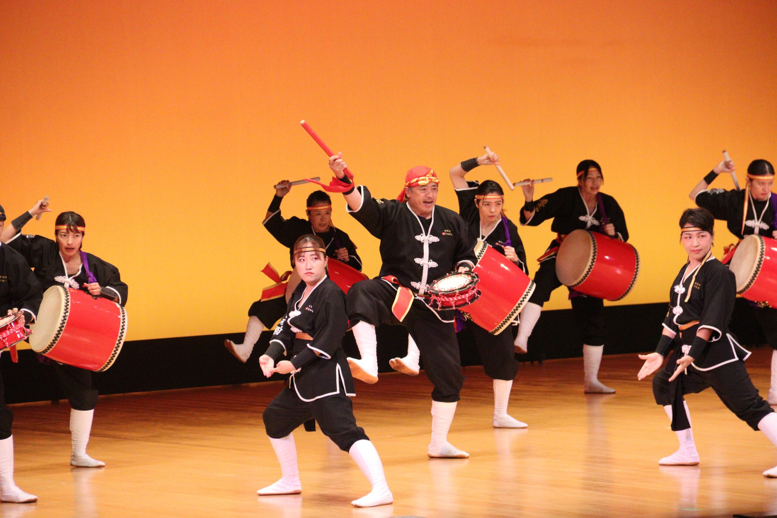 写真=ダイナミックなバチさばきを披露した琉球國祭り太鼓の皆さん